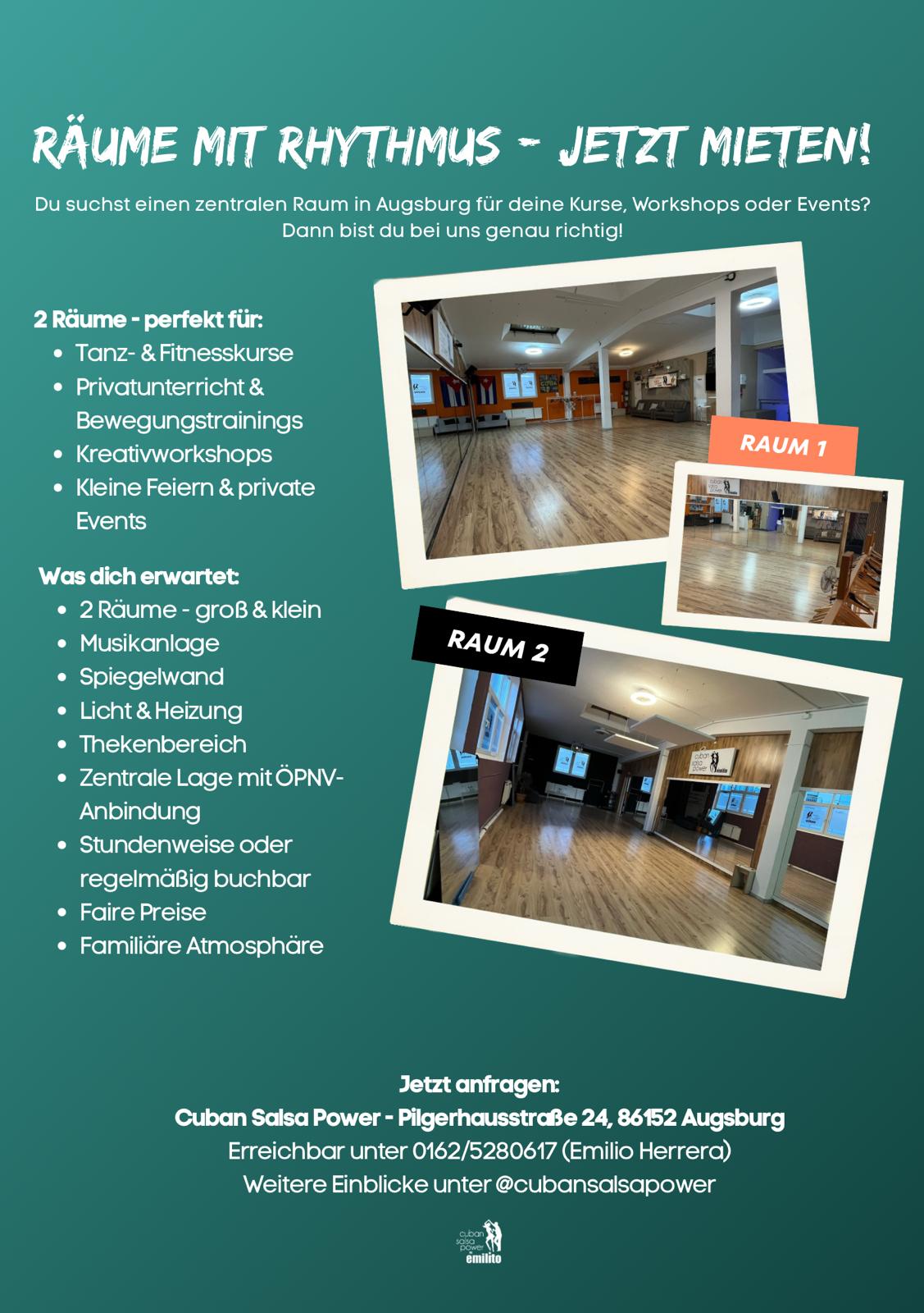 Unsere beiden Räume in der Pilgerhausstraße stehen zur Vermietung bereit – perfekt für Tanz, Bewegung oder kreative Entfaltung.