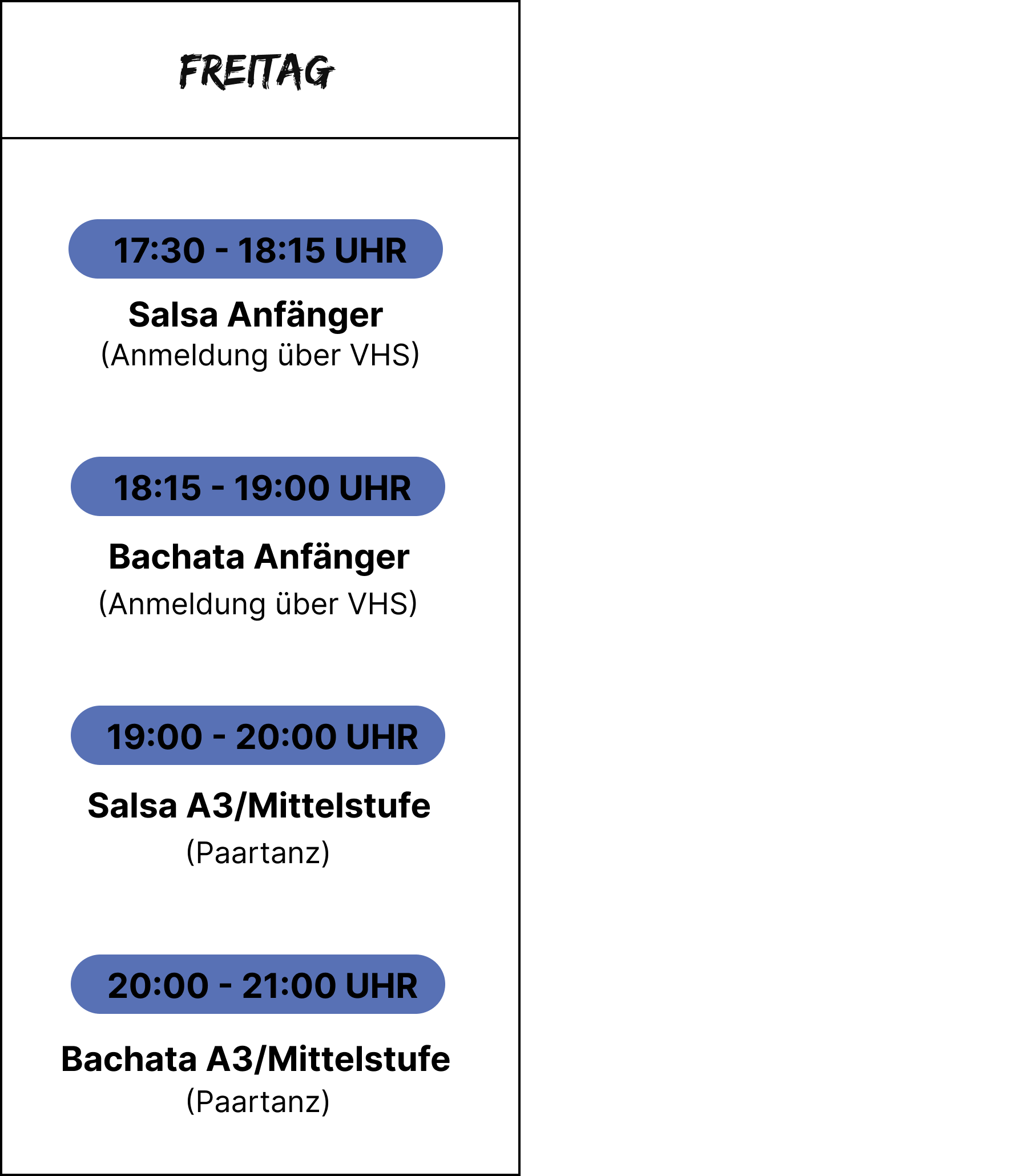 Lerne bei uns, dem vierfachen deutschen Meister, original kubanisch Salsa tanzen und vieles mehr! Du kannst bei uns jederzeit einsteigen!
